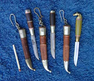 Pienet Kauhavalla valmistetut puukot ovat innoittaneet kautta aikain myös hopeaseppiä. Pieniin ja siroihin puukkoihin ovat maamme taitajat rakentaneet upeita hopeisia tuppia. Nämä esineet ovat syntyneet varmaankin lahjoiksi eri tarkoituksiin. Kuvassa olevaan pieneen puukkoon on tehty hopeinen vaakunatuppi 1903 Turussa, hopeaseppä ja puukon tekijä vain on vielä tunnistamatta. Puukkoon tehty tuppi on eräänlainen ”triumfi” ja kunnianosoitus kauhavalaiselle pienoispuukolle. Hopeasepät tilasivat kauhavalaisilta valmistajilta pelkkiä puukkoja ja sitten alkoikin melkoinen suunnittelu tupen osalta. On vaatinut alansa osaamista ja kärsivällisyyttä moisen työn tekeminen. Näitä harvinaisuuksia esiintyy aina silloin tällöin, mutta kokonaismäärä on varmasti pieni ja korkeintaan ehkä muutamia kymmeniä.