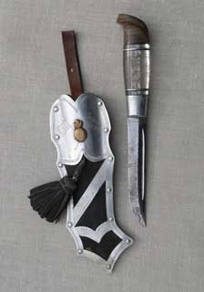 En ole tavannut näitä uushopealla heloitettuja puukkoja kuin tämän yhden ja se lienee partiopuukkojen eräänlaista aatelia. Puukon mukana on vielä laulukirja, jonka kannessa lukee De Wereld Jamboree 1937 Zang- Bundel, songs- rounds- yells. Teos lienee yhtä arvokas kuin puukkokin, jonka droloonipää on jo ajan kuluttama, eli halkeamia esiintyy. Toinen melkoisen erikoinen partiopuukko on Kauhavalla sijainneen Taidetakomon valmistama tupen partioleimalla varustettu tikarimallinen ”partiopuukko”. Kaksipuolinen teroitus on ollut meille suomalaisille vieras ja outo, mutta tämä yritys alkoi valmistaa tikarin mallista, eli molemmin puolin teroitettua teräsasetta partiolaisille.