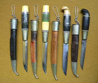 Nykyisin kun puukon kaikkinainen suosio ja harrastaminen on saanut uutta pontta, niin myös niiden keräily on lisääntynyt. Asiaa seuranneena olen pistänyt merkille, että puukon koko ei vaikuta sen hintaan. Monet pienet puukot näyttävät huutokaupoissa nousevan isompien veljiensä hintoihin ja vain tuotteen kunto ratkaisee hinnan. Ilokseni olen myös pannut merkille, että nykyrakentajien tuotteet menevät hyvin kaupaksi, sekä keräilijöille, että puukkojen käyttäjille. | |||||||