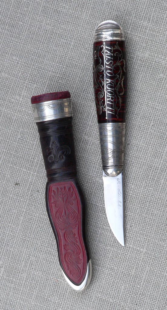 Satuin tuolloin olemaan puukkoseuran puheenjohtajana ja siitä tämä kunnia osalleni lankesi. Kaunis ja kätevä taskupuukko kulki mukanani jokaisena päivänä ja kaikissa askareissani se oli aina ensimmäinen apuni. Kapine oli niin upea ja mielenkiintoinen, että pian ryhdyin myös itse niitä valmistamaan ja muutama vuosi sitten sorkoupotuksesta kovasti innostunut Mirja vaimoni alkoi niitä koristelemaan. Muutamia vuosia sitten minua pyydettiin esitelmöimään suomalaisesta puukosta ja sen nykytilasta lähes tuhannen ammattiopettajan kansoittamaan seminaariin. Tilaisuudessa oli läsnä myös eräs rouva, joka oli tuolloin paikkakunnan kansanedustaja. Eturivissä istuva rouva kuunteli mielen kiinnolla esitelmää ja kun olin päässyt näihin pieniin puukkoihin, niin ajattelin saada yleisöltä aikaan pienet naurut. Kävelin rouvan eteen ja kysyin haluaako hän nähdä Naperoni. Rouva ponkaisi pystyyn ja ilmoitti, että ehdottomasti. Tuhatpäinen yleisö puhkesi hersyvään nauruun ja kaivoin taskusta tekemäni puukon nähtäville.