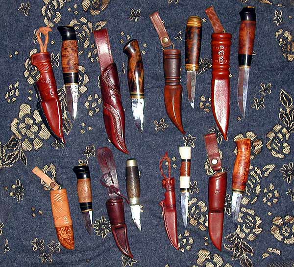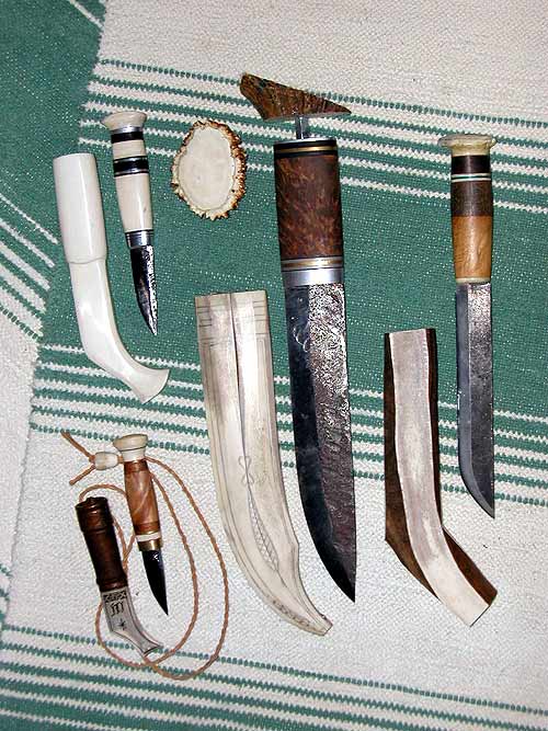 Lapinpuukon osia ja valmiita lapinpuukkoja | ||||||||