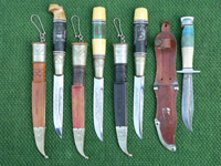 Kansanomaiset käyttöpuukotRyhmään voi sijoittaa koko joukon suomalaista puukonmuotoilua. Aikoinaan kun puukkoa ei saanut rautakaupasta, se piti teettää sepällä. Joka kylässä oli tavallisesti oma seppä ja hänellä oma pettämätön puukkomallinsa, joka oli periytynyt usein isältä pojalle. Rekisterissä on lähes parisataa tälläistä seppää, joiden tiedetään tehneen puukkoja muiden töiden ohessa. Mallikappaleita on säilynyt melkoisesti, mutta niiden idenfiointi on vaikea suorittaa, koska vain harvoin seppä löi tekeleeseensä omat merkintänsä. Mallina kuvassa nähdään kuhmoislaisen Oiva Rännilän takoma puukko.