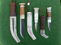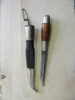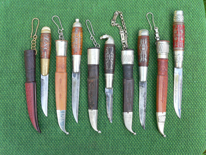 SaamelaispuukotArktiset olosuhteet asettavat puukolle erityisiä vaatimuksia. Sen tulee olla monikäyttöinen ja kestävä, sekä puukon että tupen osalta. Nämä puukot edustavat maassamme täysin omaa tyyppiään. Niiden valmistuksessa on käytetty paljolti lujaa ja helposti saatavilla olevaa poronluuta. Pää on palasista koottu, käyttäen osittain puuta, tuohta ja luuta. Terät ovat aina hyvää hiiliterästä, jota entisinä aikoina saatiin mm. loppuunkäytetyistä viiloista. Lapin karu luonto ja kaamos ovat siivittäneet koristelun huimaan lentoon. Kauniit kaiverrukset pitkin poronluisia pintoja hivelevät katselijan silmää sekä puukon päässä että tupen pinnoilla. Ennen taidokkaita valmistajia oli viljalti, mutta nykyään vain muutamat harvat osaavat ja viitsivät enää uhrata aikaansa puukon koristeluun. Perinne on kuitenkin säilyvää ja eräs sen vaalijoista on Petteri Laiti Inarissa.
